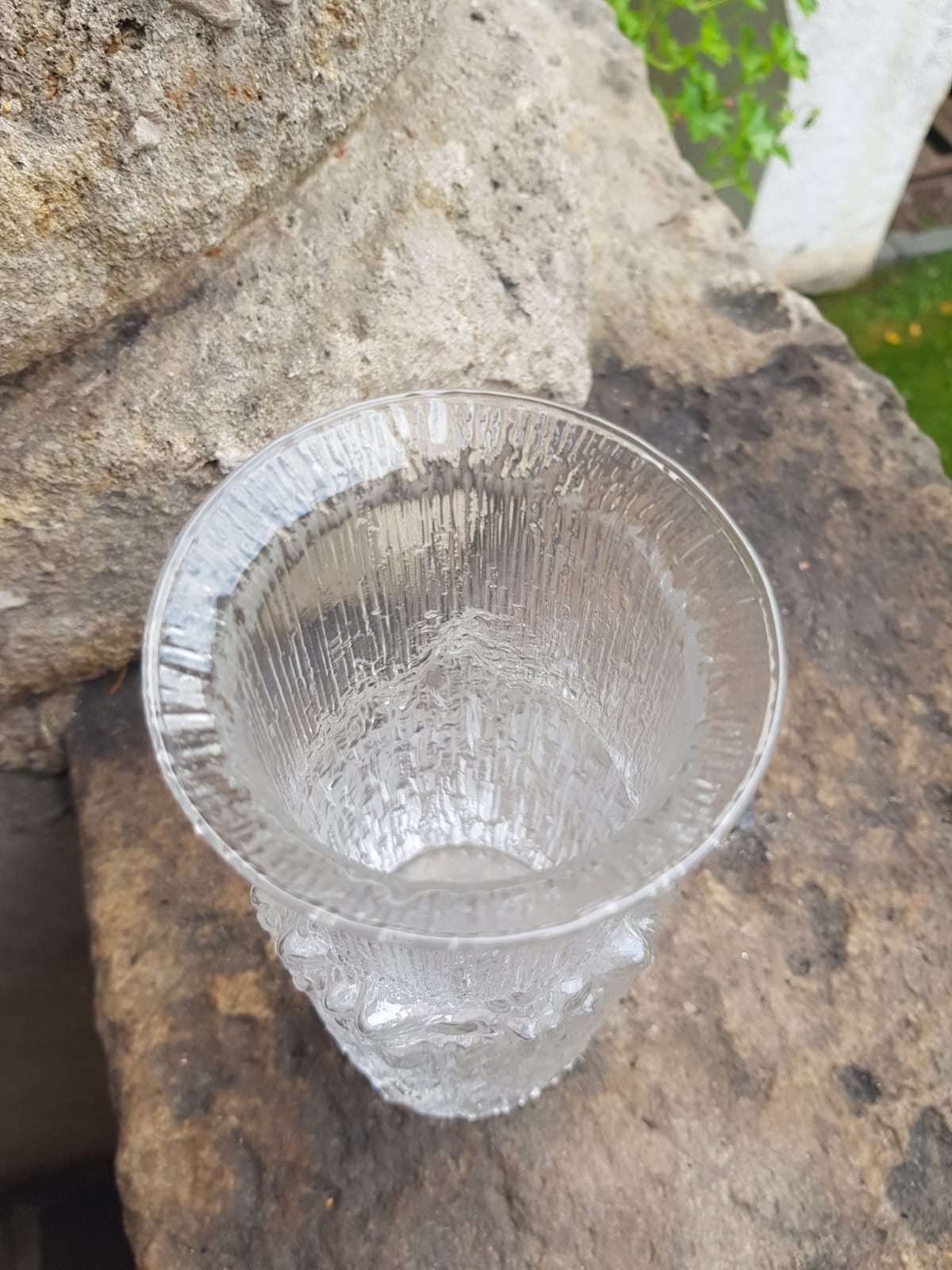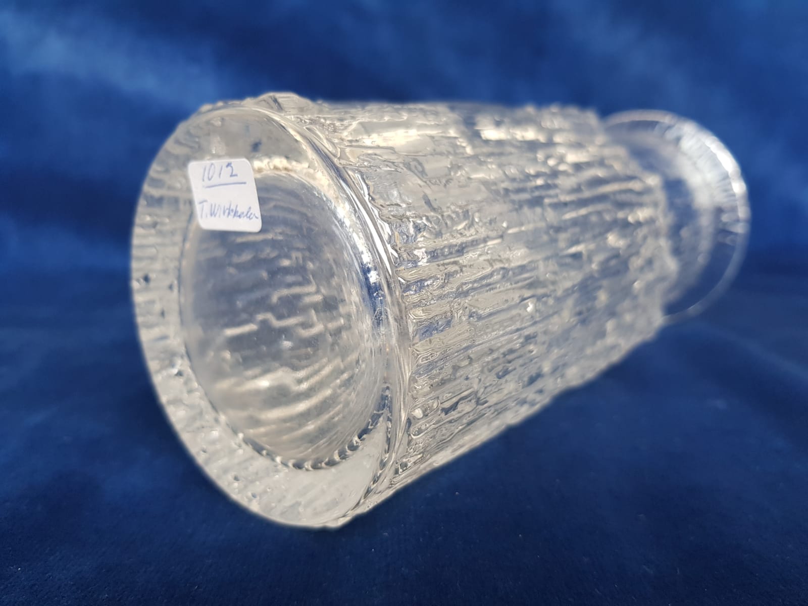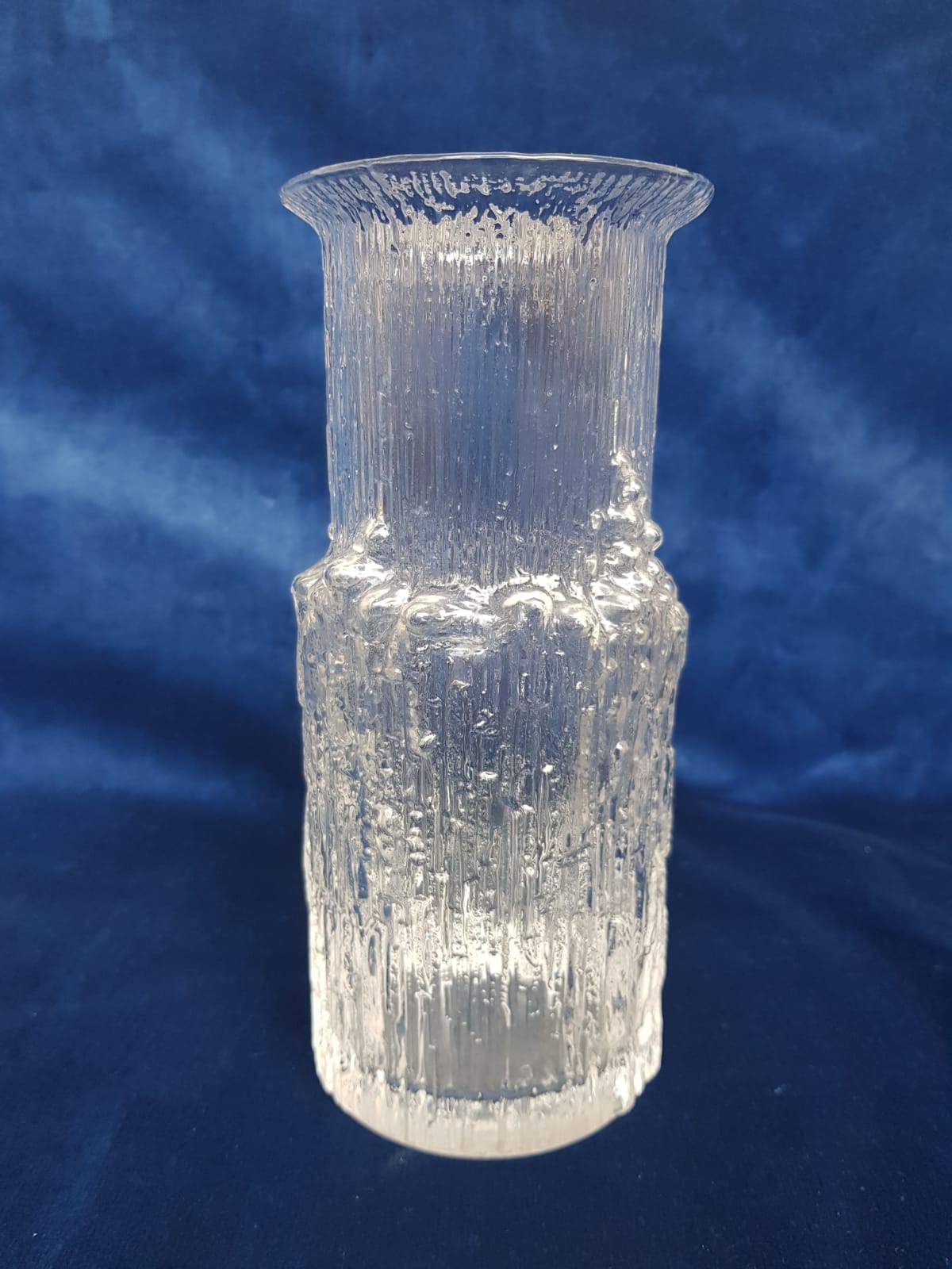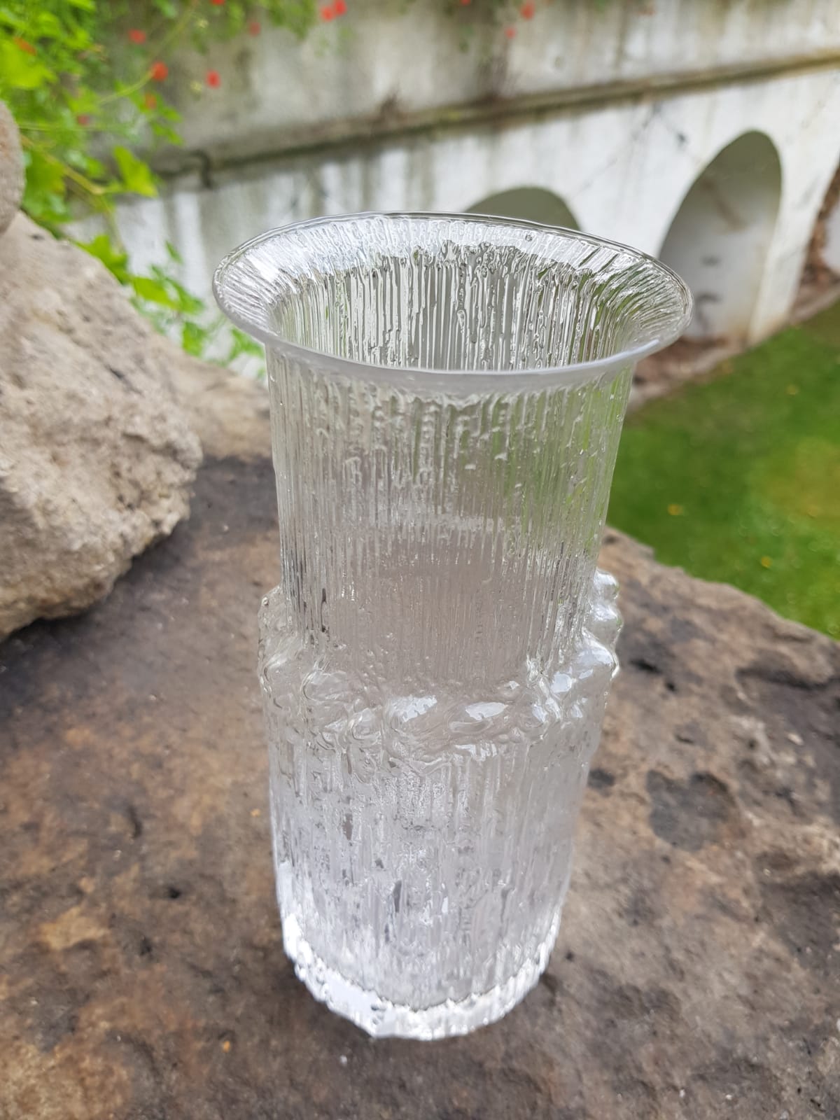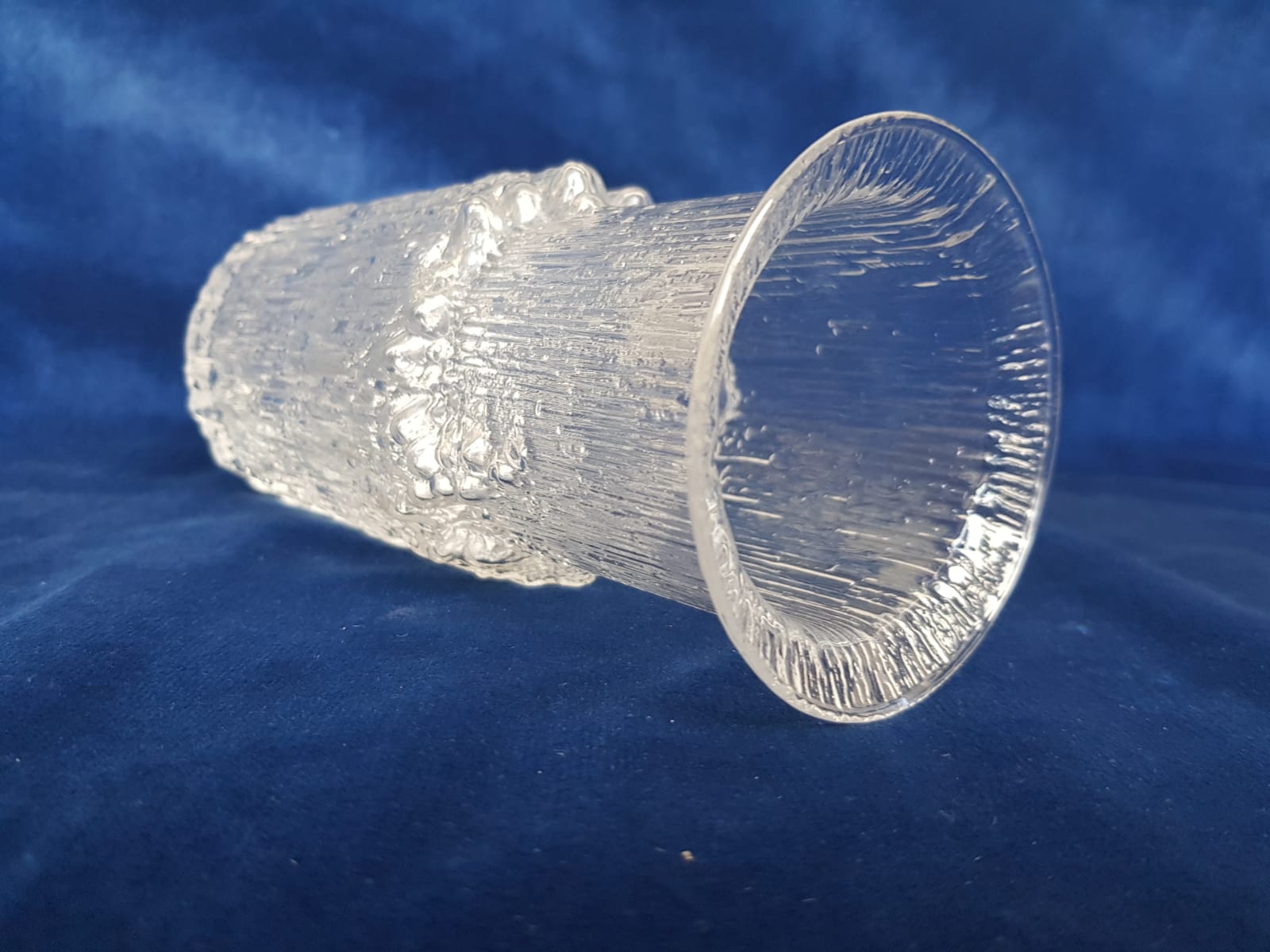 This elegant vase, inspired by Nordic nature and the appearance of melting ice, was originally produced between 1975 and 1984. Each piece was meticulously handmade and mouth-blown, available in two sizes (both 18 cm) and identified by the model number 2745.