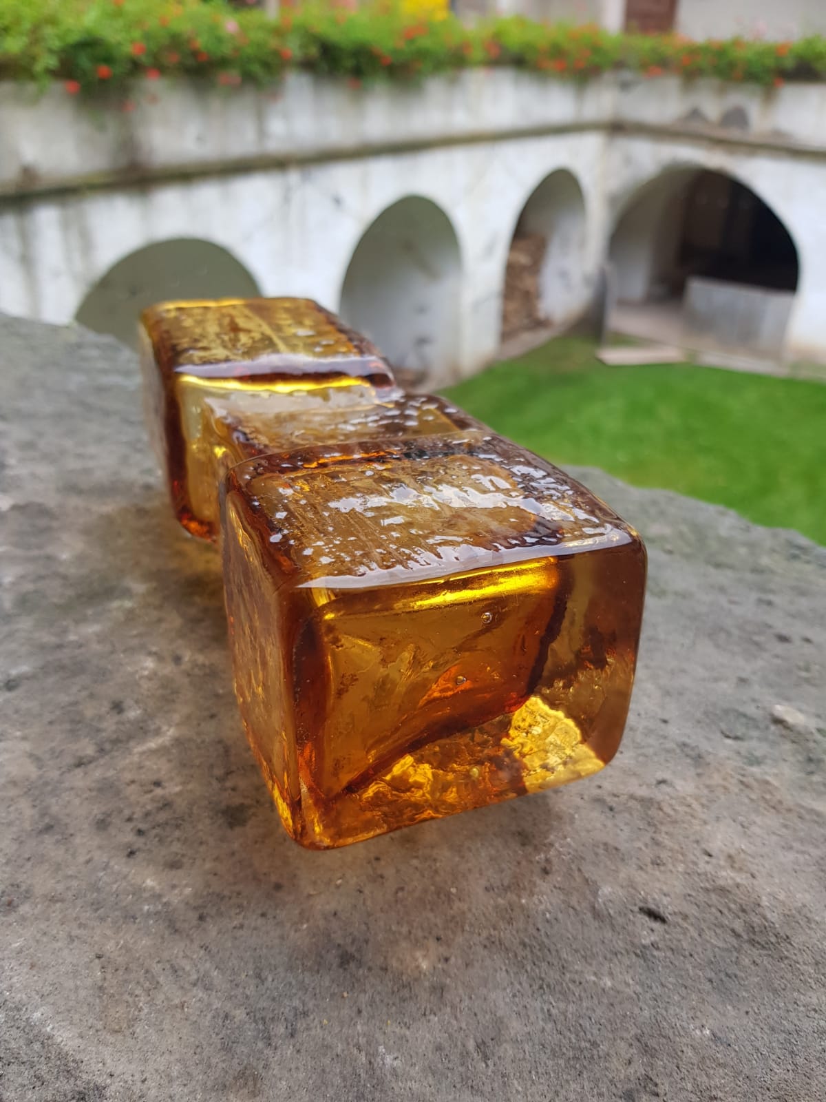 The name "Drunken Bricklayer" refers to the original asymmetrical construction, which resembles a sloppily built wall. Each piece is unique because it was made using a hand-moulded technique. These vases are highly valued by collectors and are considered an important example of British mid-20th-century glass design.