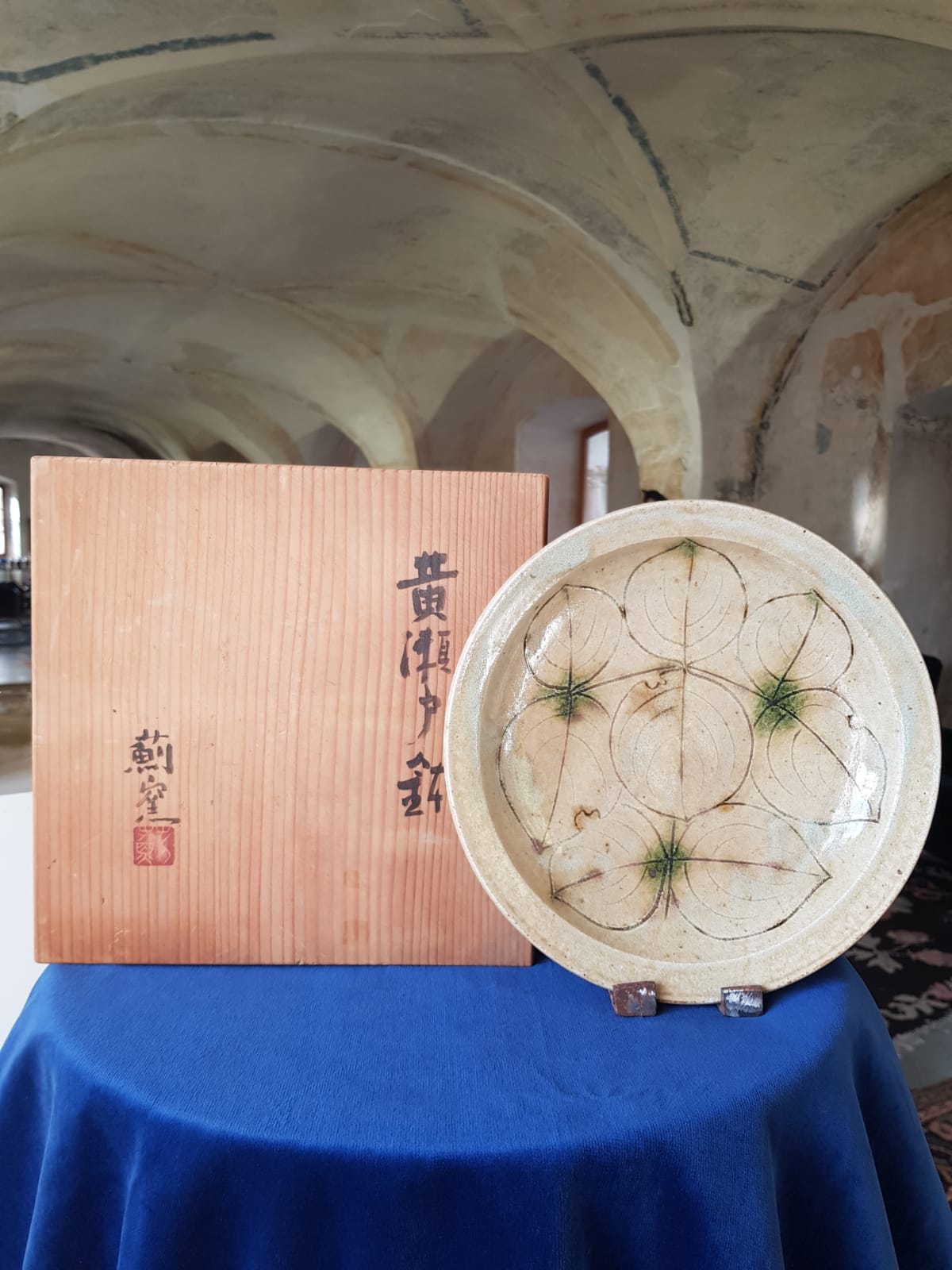 This exquisite ceramic plate by master potter Ryuta Nakazato exemplifies the refined tradition of Karatsu kohiki pottery.