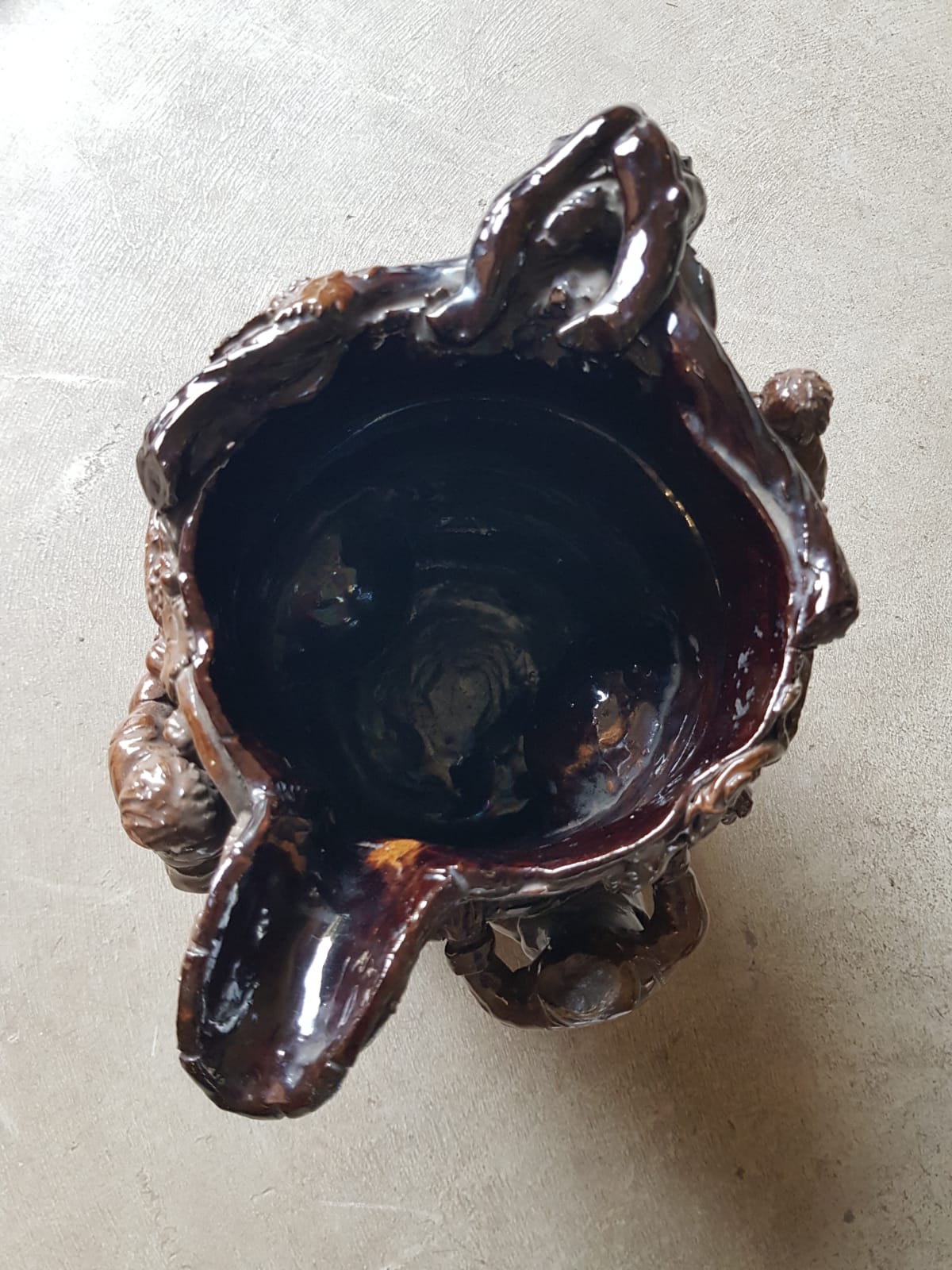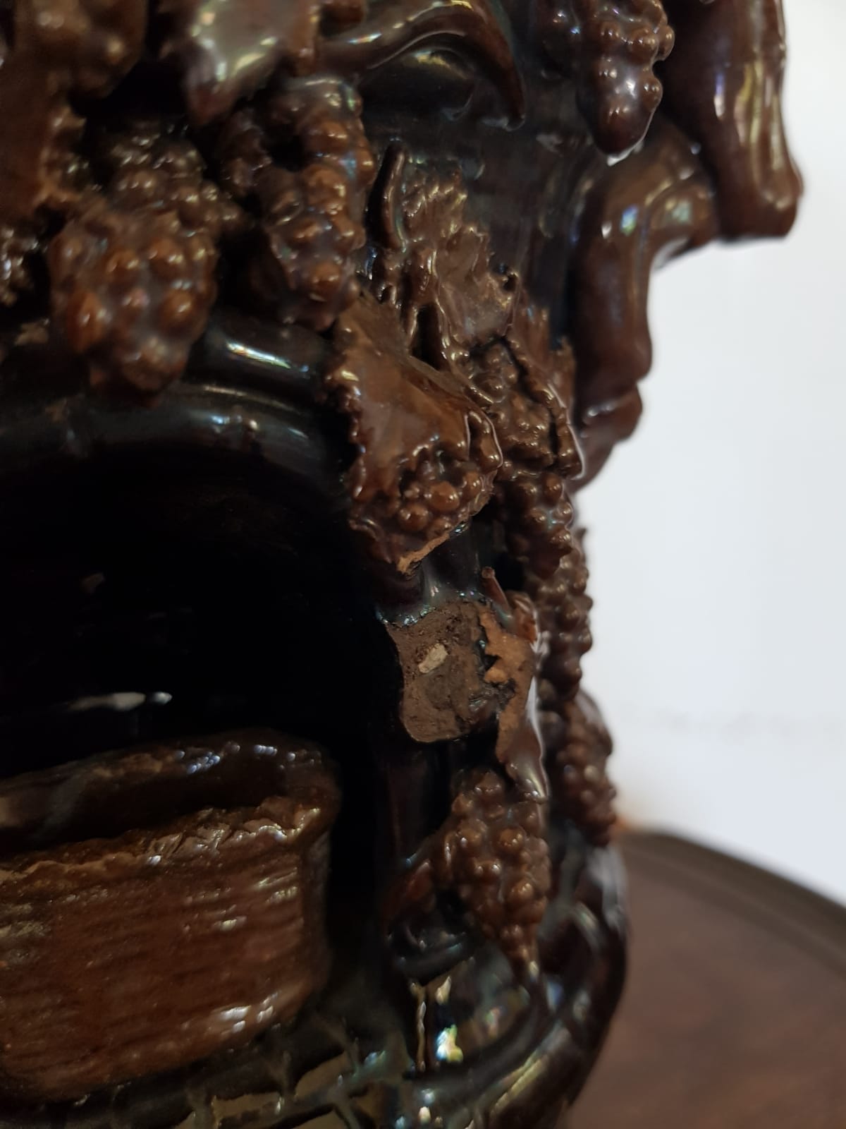 "Grape Picker" Ceramic Jug, Edward Bingham For Hedingham Castle Pottery, England, late 19th Century