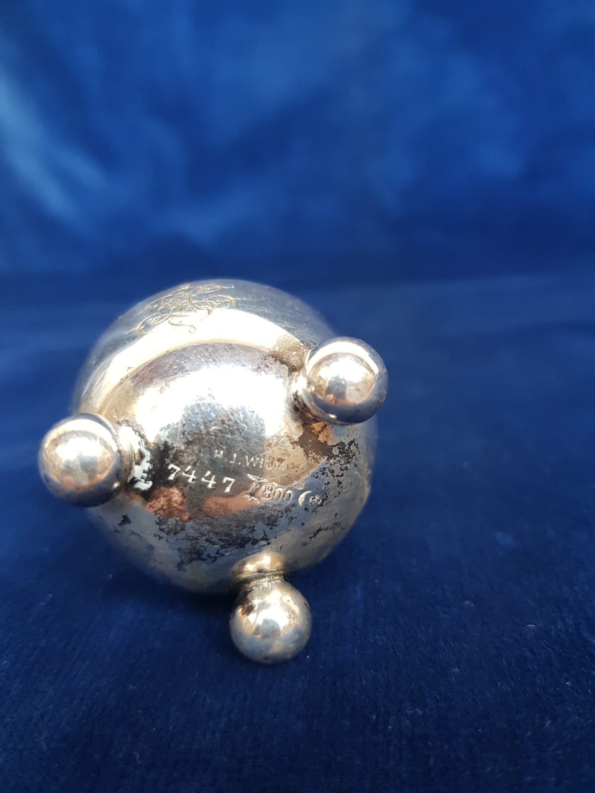 These exquisite antique salt cellars from late 19th-century Germany showcase the refined craftsmanship of H.J. Wilm, a prestigious Berlin and Hamburg manufacturer established in 1767.