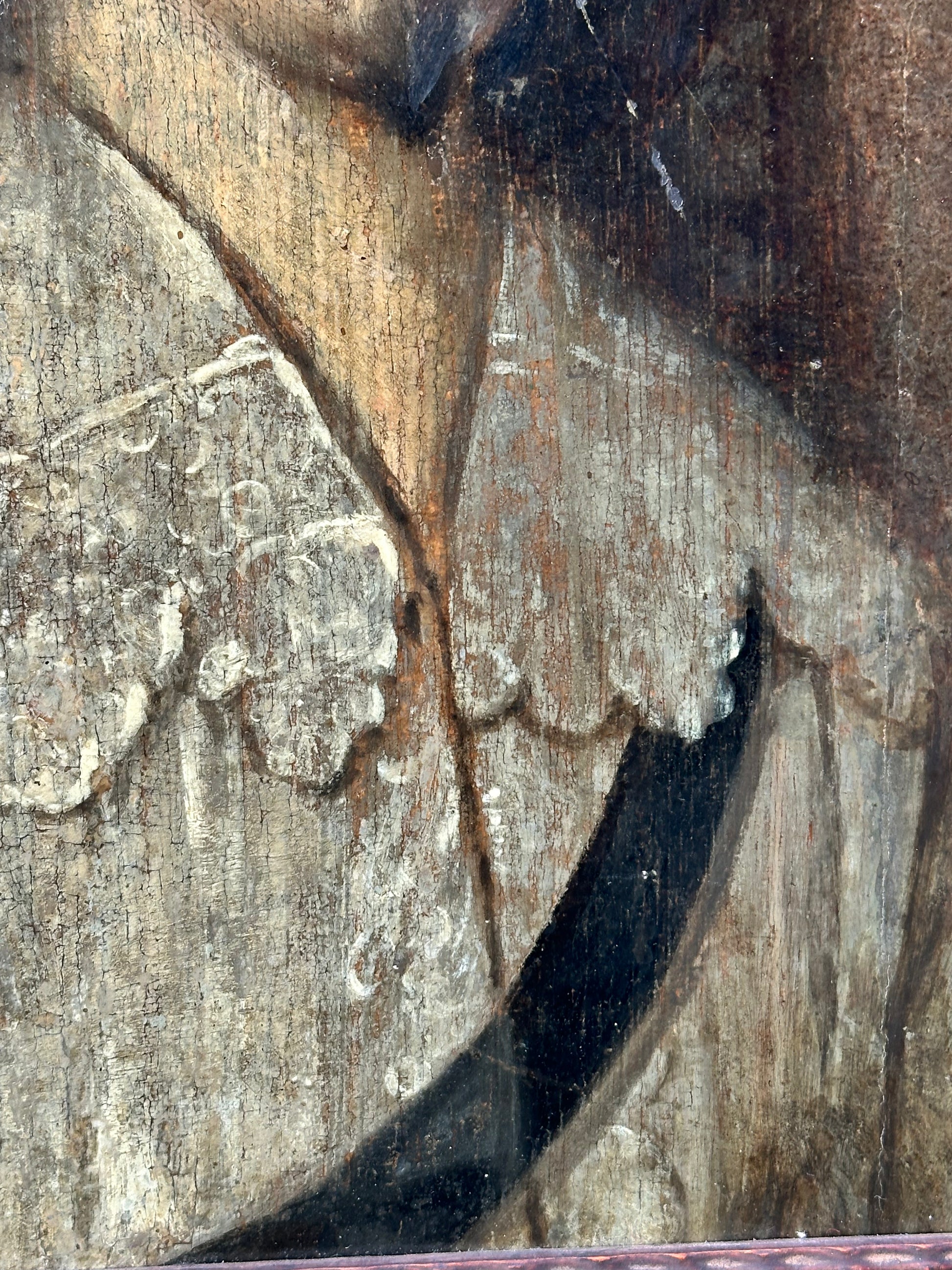 A compelling portrait from the 17th century, this oil painting on wooden panel exemplifies the formal conventions of aristocratic representation.