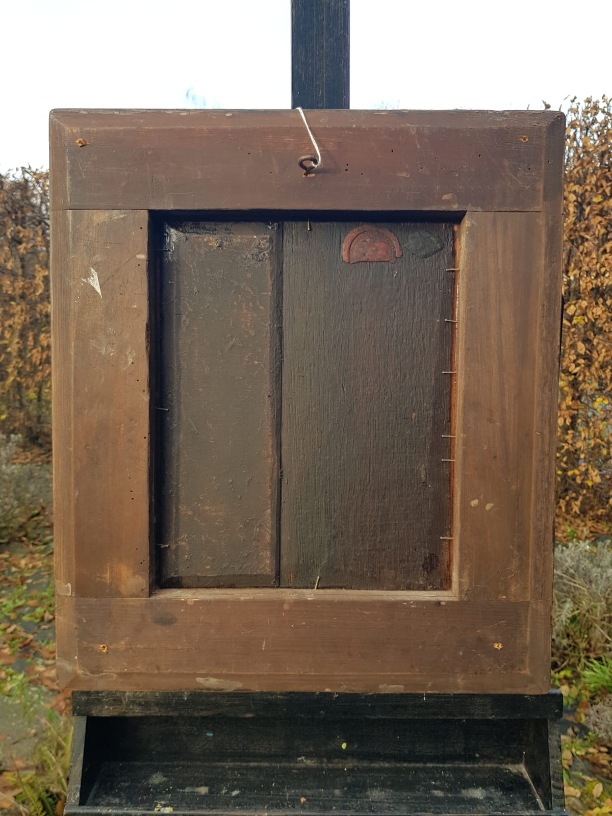 Encased in a substantial dark wooden frame with carved detailing, the painting measures 29.5 × 23.5 cm (45 × 39 cm framed), offering collectors an intimate window into 17th-century portraiture and aristocratic sensibility.