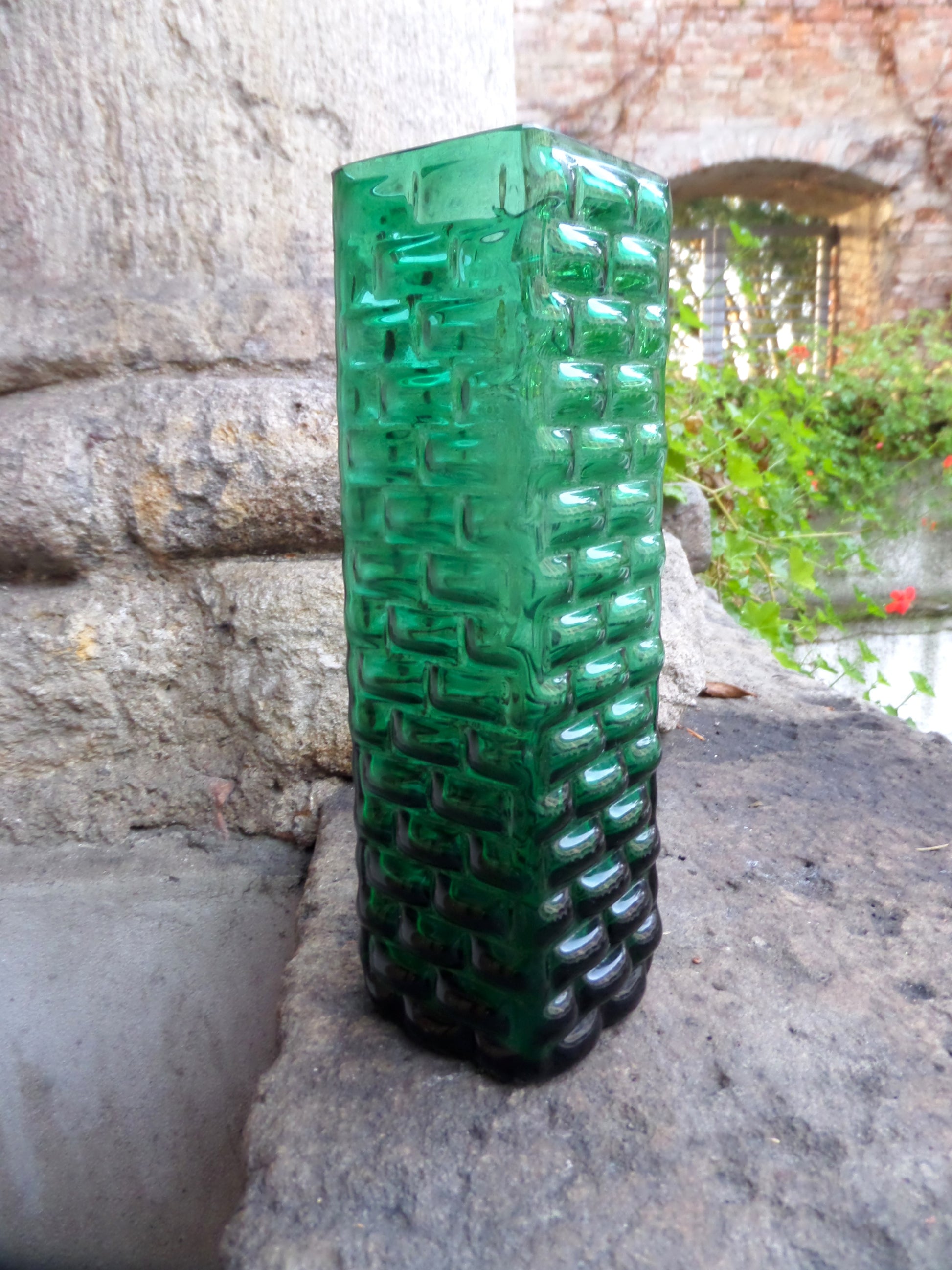 Relief Emerald Green Glass Vase, Hirschberg Glassworks, Germany 1960s