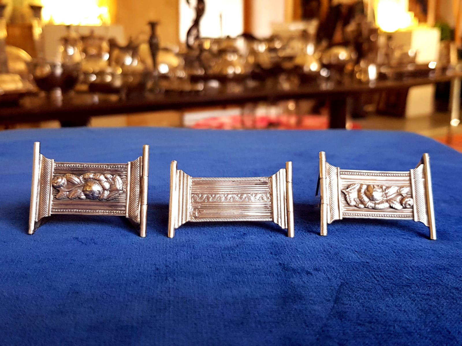 Crafted from silver, these decorative accessories range from 3 to 5 centimeters in height, making them ideal for displaying place cards or menus at elegant dining occasions.