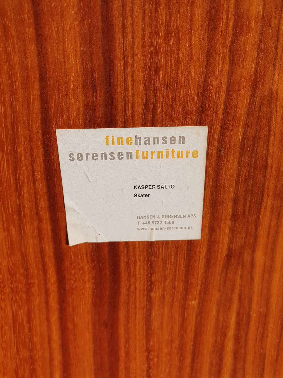 Designed by Kasper Salto and produced by Hansen & Sørensen, the "Skater" Chair represents a masterclass in Danish modernism. Its continuous molded walnut veneer shell curves gracefully to form both seat and backrest, while a brushed aluminum frame provides understated structural elegance.