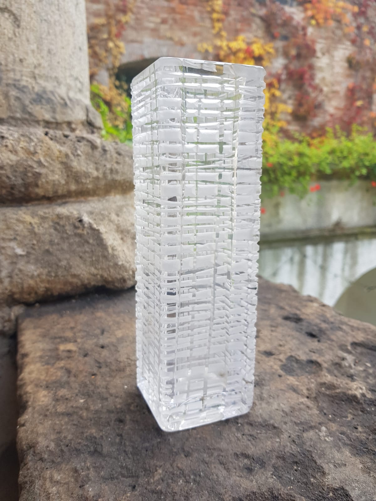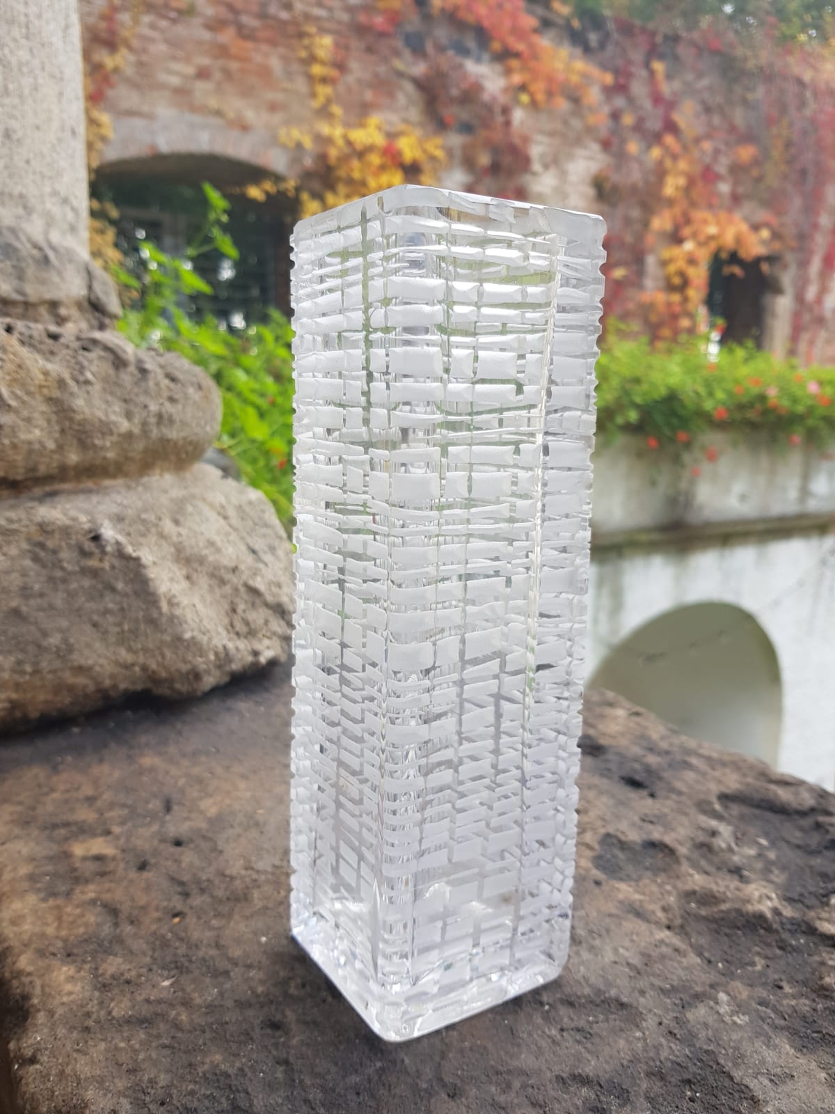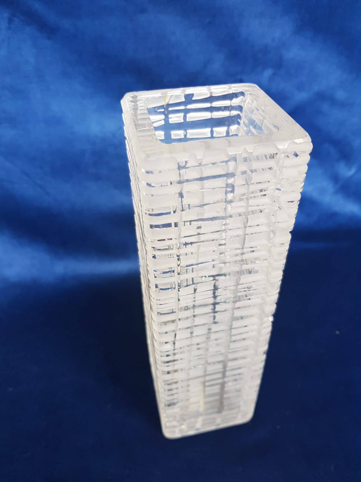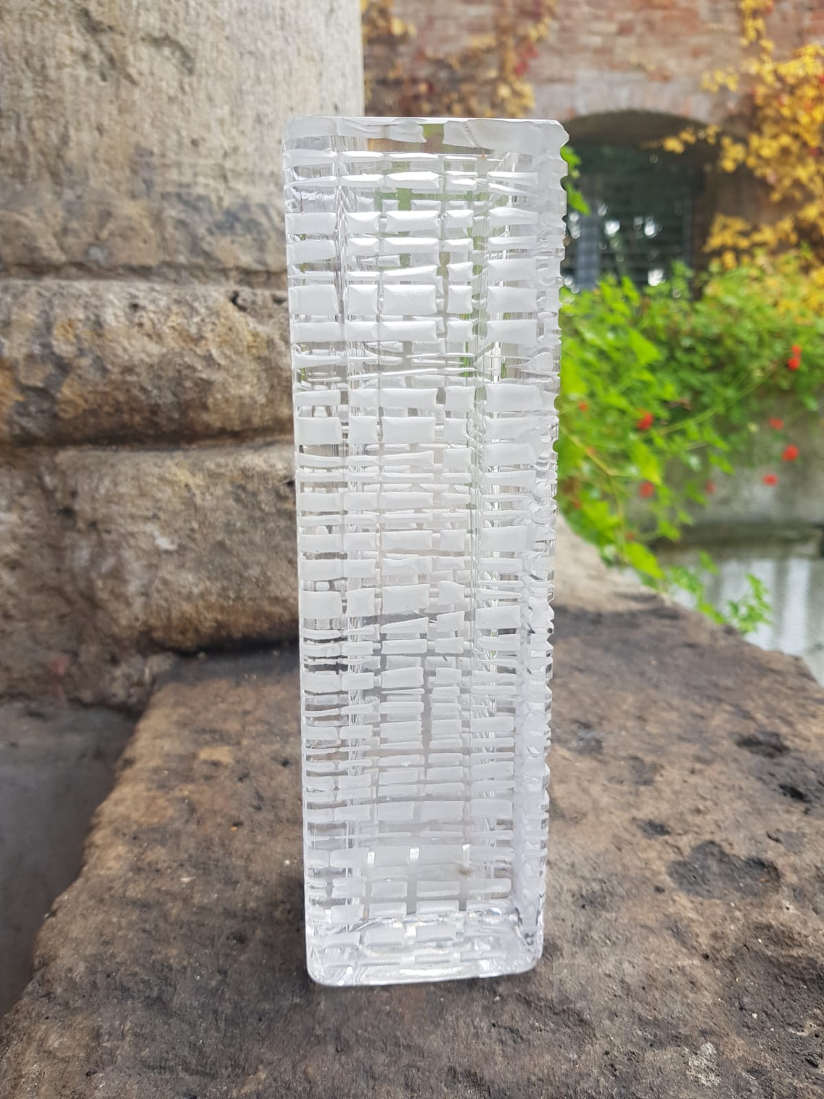 Original glass square vase called Sparta, model from the renowned German Peill & Putzler glassworks.