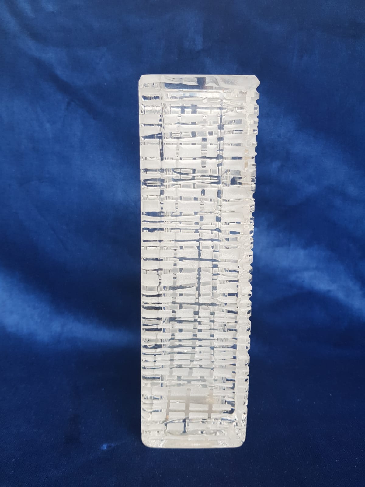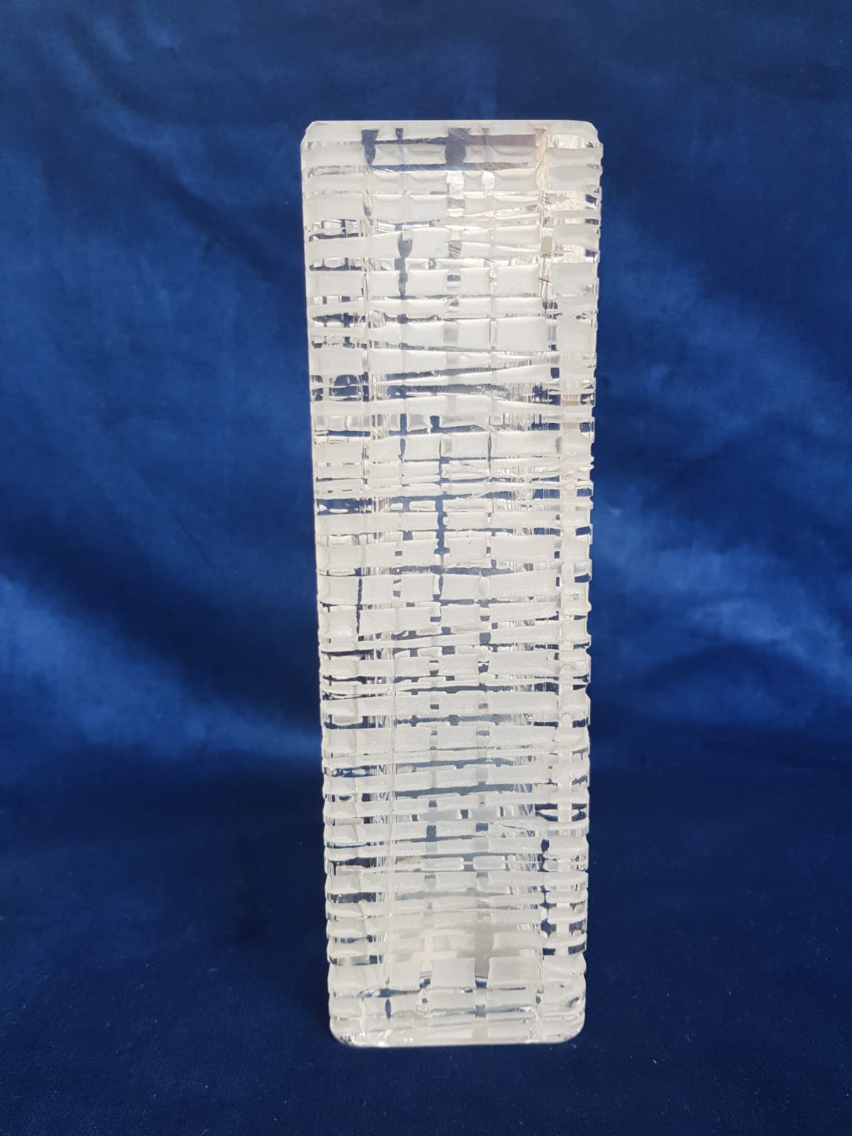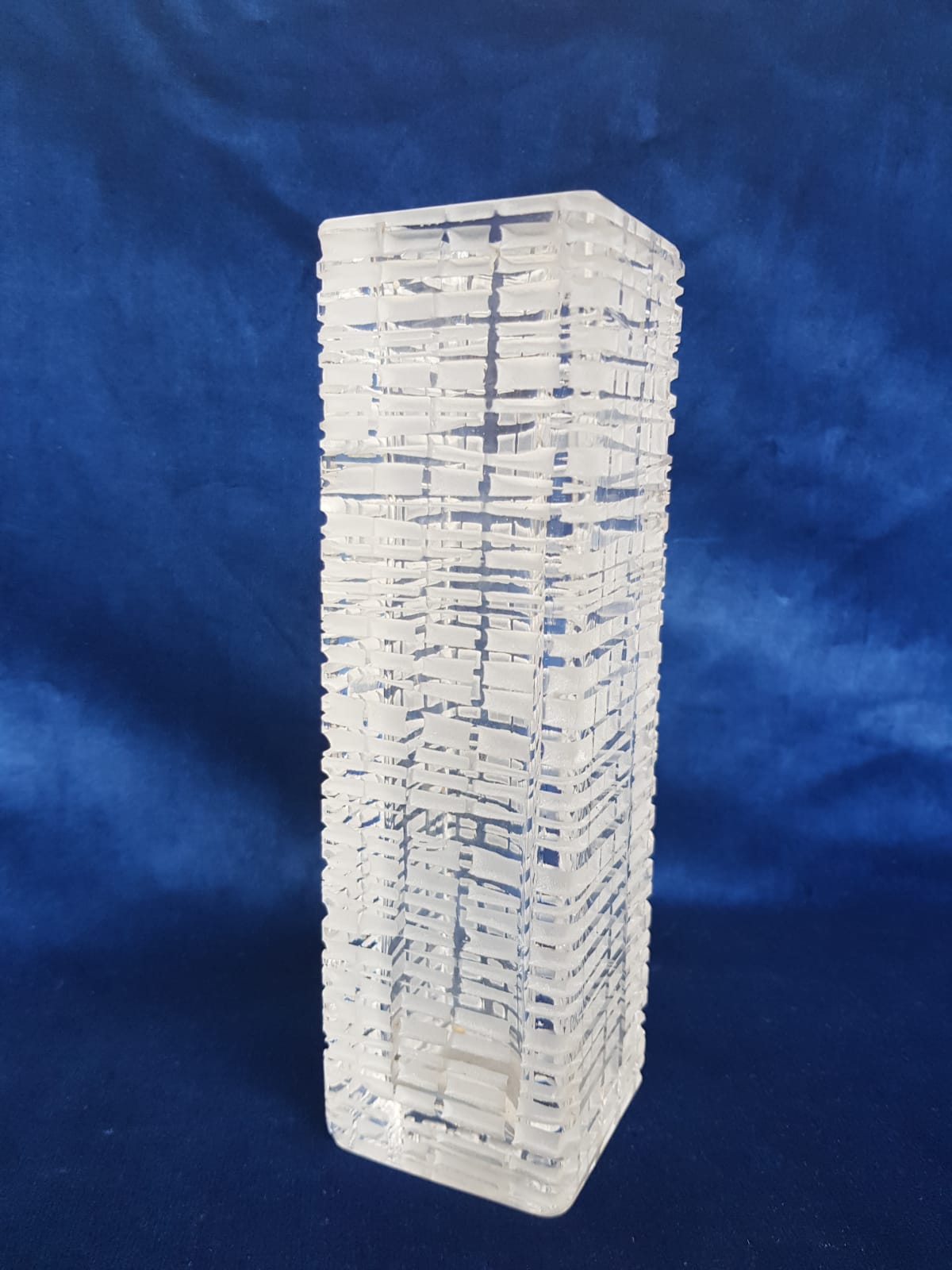 Original glass square vase called Sparta, model from the renowned German Peill & Putzler glassworks.