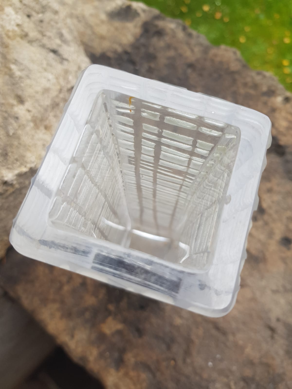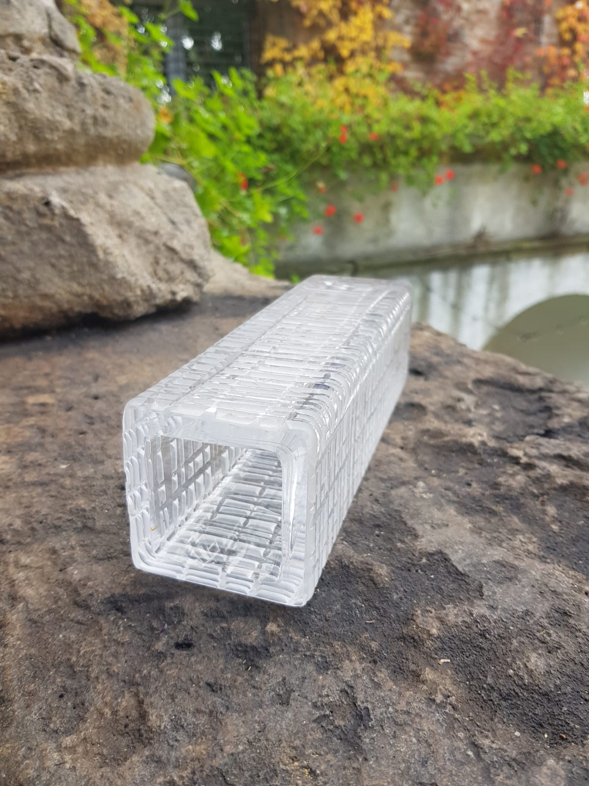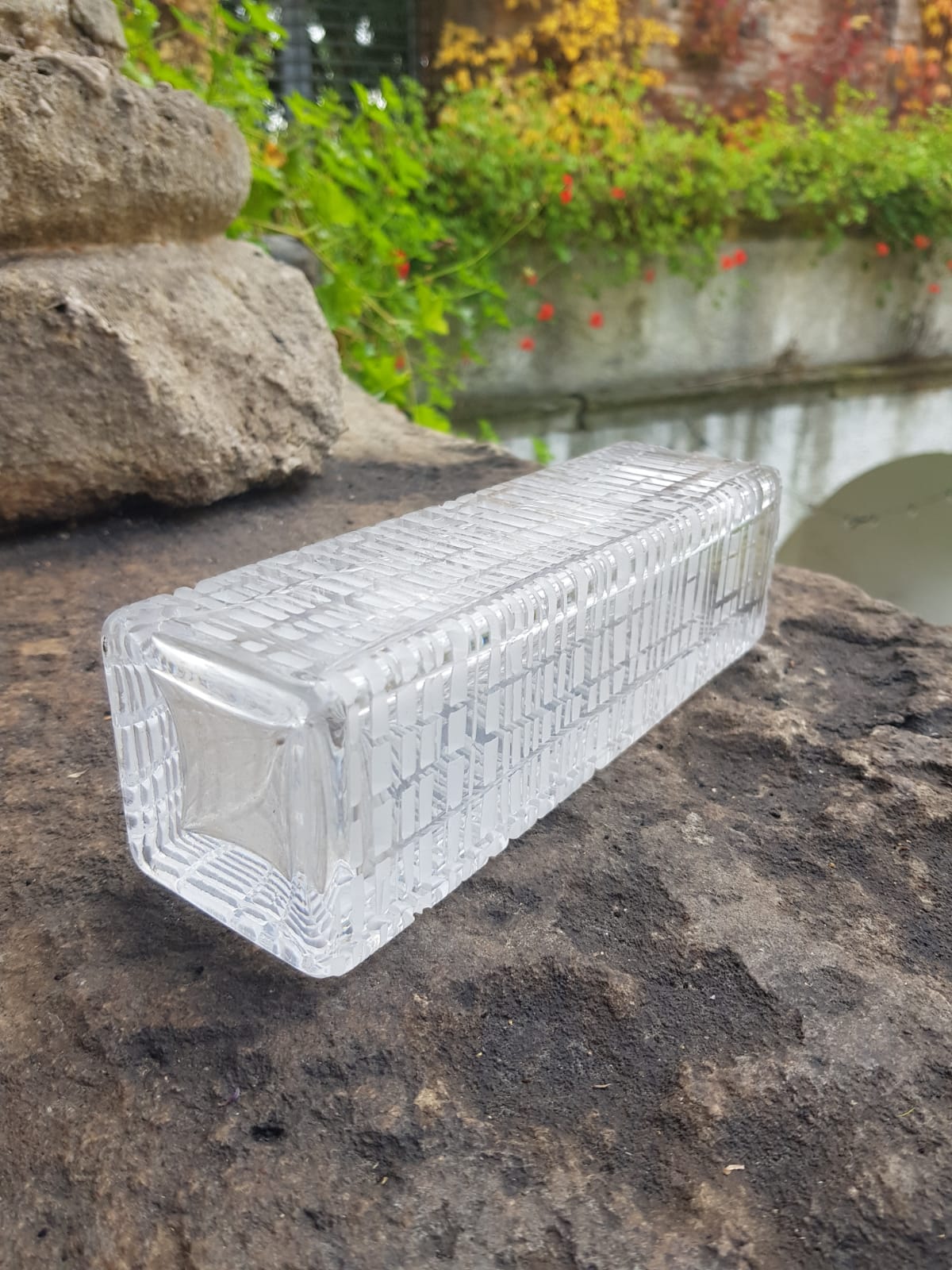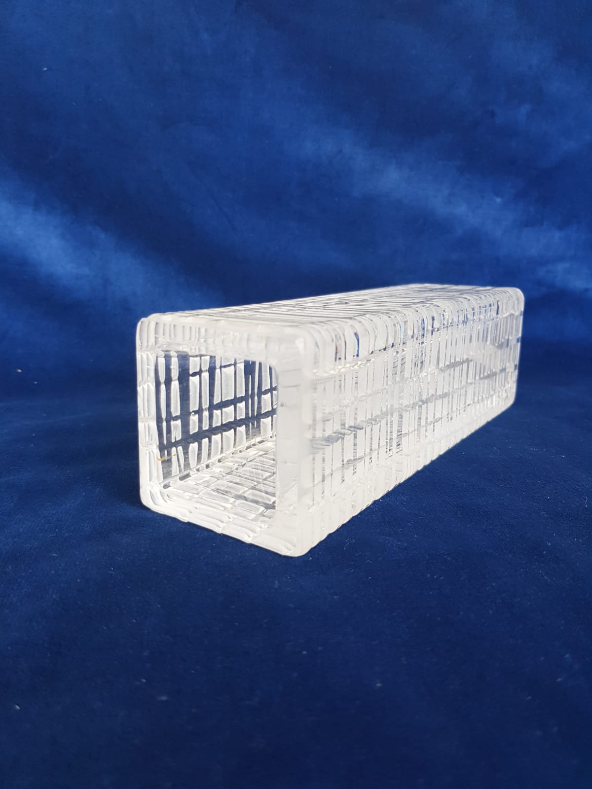 Original glass square vase called Sparta, model from the renowned German Peill & Putzler glassworks.