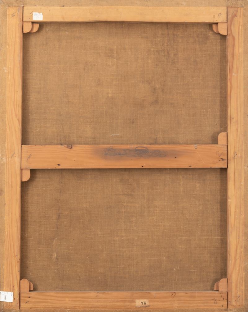Visible signs of age—crackling, paint loss, and patina—testify to the work's historical significance and authenticity.