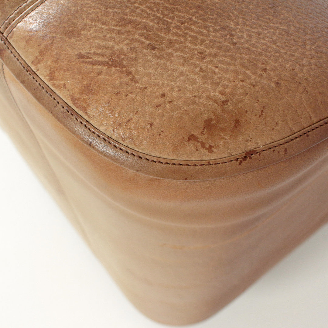 The original thick buffalo leather develops a distinguished patina that enhances its character over time. An ingenious extendable seat mechanism allows each piece to extend forward, seamlessly transitioning from intimate seating to generous lounging or daybed configurations.