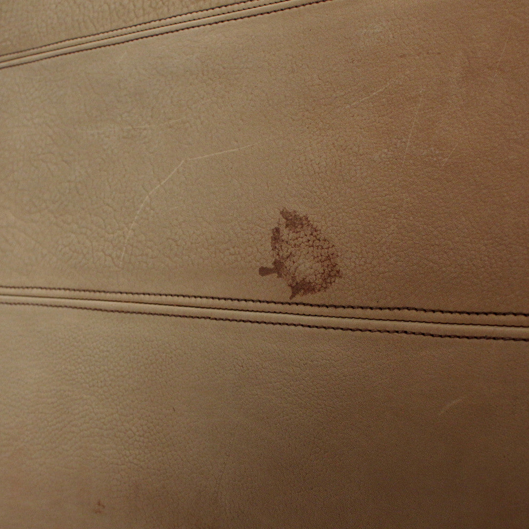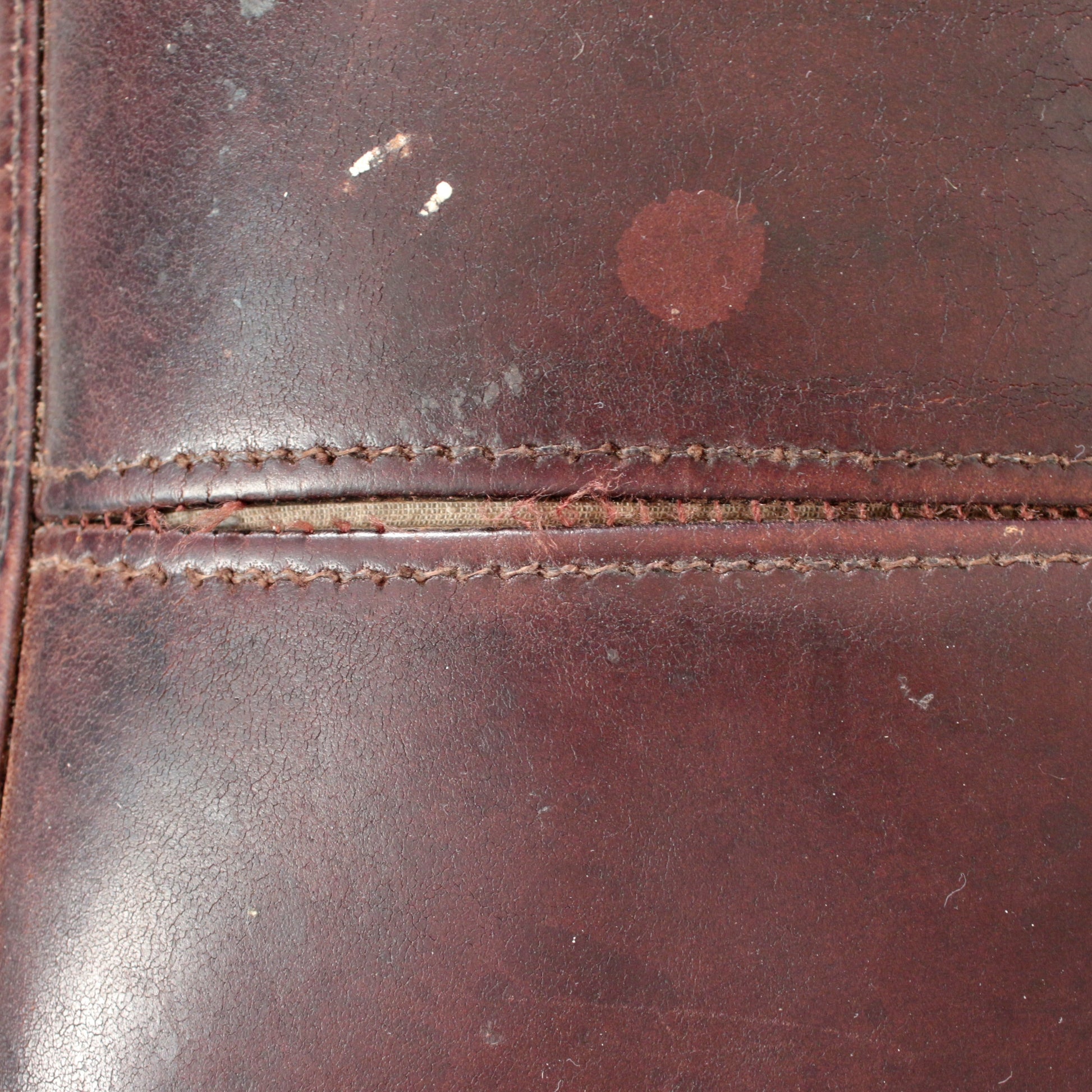 Signs of wear commensurate with age, the leather has a patina, is clearly faded or darkened in places and has a few scratches and stains, a seam on the seat of the 2-seater sofa is slightly open. Average market price for a vintage suite: 4.000 to 20.000 euros (according to conditions).